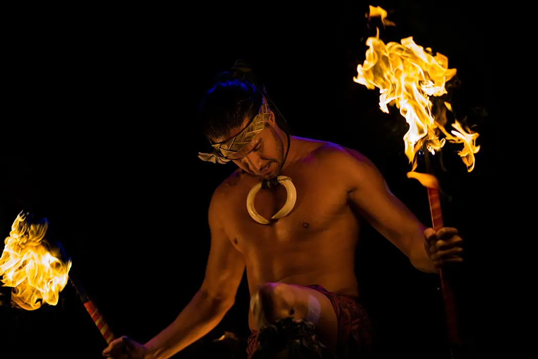 takes you on an enchanting and unforgettable journey through the islands of Polynesia. As is the case at all luaus, take your shoes off, get comfortable and relax as the beautiful and exotic dancers of Polynesia dazzle you with their colorful costuming, songs and dances. The highlight of the show builds to a fever pitch, drums roaring, introducing our Samoan fire knife dancer, as our chief thrills you with his daring and spectacular warrior’s dance of the fire.